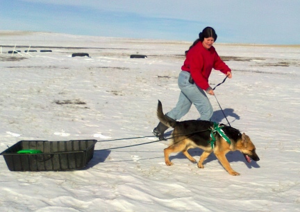 | German Shepherd Sled Dog in Harness Learning Beginning to pull |